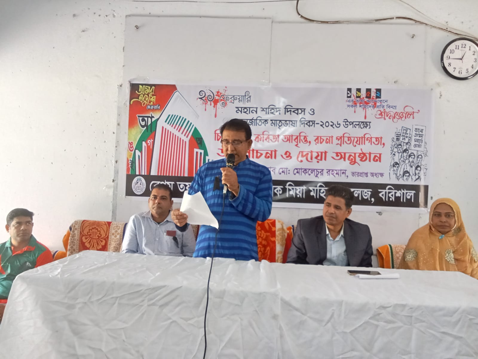 বরিশালের বেগম তফাজ্জেল হোসেন মানিক মিয়া মহিলা কলেজে যথাযোগ্য মর্যাদা ও ভাবগাম্ভীর্যের মধ্য দিয়ে মহান শহীদ দিবস ও আন্তর্জাতিক মাতৃভাষা দিবস পালিত হয়েছে। দিবসটি উপলক্ষে কলেজ প্রাঙ্গণে নানা কর্মসূচির আয়োজন করা হয়।